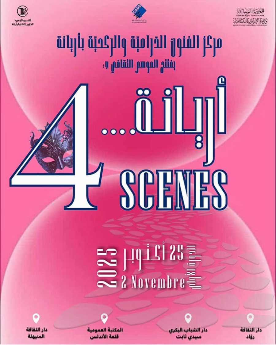 31 تحت إشراف المندوبية الجهوية للشؤون الثقافية بأريانة وبدعم منها وفي إطار افتتاح الموسم الثقافي الجديد ينظّم مركز الفنون الدّراميّة والركحيّة بأريانة الذي يشرف على ادارته الاستاذ فتحي المدوري فعاليات الدورة الأولى لتظاهرة مسرحية تأسيسية تحتفي بالفن الرابع تحت عنوان طريف ومهم وهو تظاهرة “ أريانة SCENES 4 ” وذلك من 25 أكتوبر الجاري وإلى حدود يوم 2 نوفمبر المقبل. وتفتتح هذه التظاهرة مساء يوم 25 أكتوبر الجاري من فضاء دار الثقافة روّاد بعرض مسرحي بتقنيات فن العرائس بعنوان” الكبوط “ومن انتاج المركز الوطني لفن العرائس ليكون الموعد صباح يوم 26 أكتوبر الجاري ومن فضاء المكتبة العمومية بقلعة الأندلس مع عرض مسرحي بتقنيات فن المهرج والتنشيط الثقافي وبعنوان ” حفلة على غفلة ” ومن انتاج شركة وجدوش للفعاليات. اما مساء يوم 1 نوفمبر القادم فتحتضن دار الشباب البكري بسيدي ثابت عرضا لمسرحية للشباب في فضاءات مغايرة وبعنوان ” المحفل ” ومن انتاج جمعية الوفاء للنهوض المسرحي لتختتم هذه التظاهرة يوم 2 نوفمبر القادم من مسرح الهواء الطلق بدار الثقافة المنيهلة مع عرض مسرحي بتقنيات الألعاب البهلوانية والخفة للعائلة والطفل بعنوان “ستاركيدز” ومن انتاج جمعية ستار للفنون بتونس
