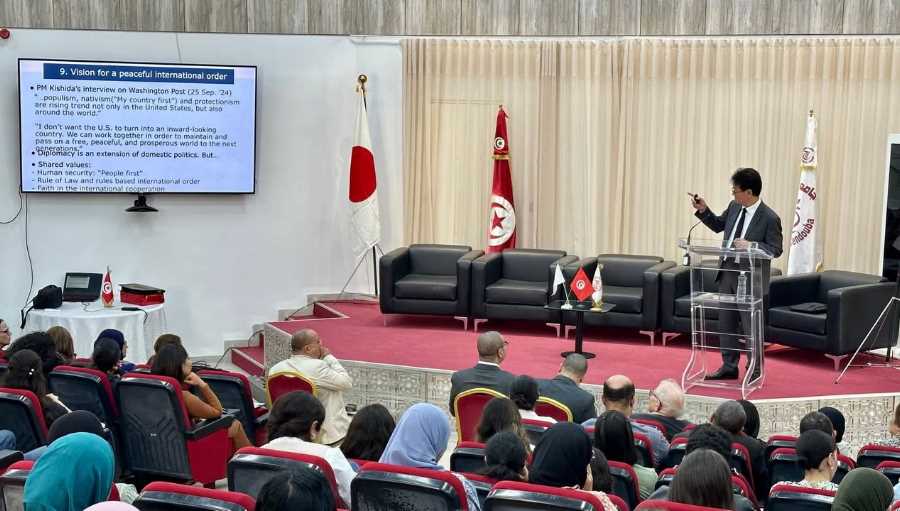 102 أدّى سفير اليابان ببلادنا “أوسوغا” بعد ظهر اول امس 20 أكتوبر الجاري زيارة الى مقر جامعة جندوبة توّجت بتقديمه لمحاضرة بعنوان “الذكرى الثمانون لنهاية الحرب العالمية الثانية: إعادة إعمار اليابان بعد الحرب وسياساتها الخارجية من أجل العالم بالسلام والازدهار” وذلك لفائدة طالبات وطلاب المعهد العالي للعلوم الإنسانية وكلية العلوم القانونية الاقتصادية والتصرف بجندوبة والمعهد العالي للدراسات الإنسانية التطبيقية بالكاف واذ اهتمت المحاضرة بعدة محاور ذات صلة بموضوعها فانها توّجت بنقاش ثري مع الحضور حول أهمية الموارد البشرية والسياسات التي تُعطي الأولوية للأمن البشري والحفاظ على الهوية الثقافية في ظلّ الابتكار من خلال التجربة اليابانية الرائدة بما مكّن الطلبة والطالبات من تعميق رؤاهم حول مختلف التحديات التي تواجه مجتمعاتنا في السياق العالمي الراهن. جدير بالذكر ان جامعة جندوبة تشهد انفتاحا كبيرا على المحيط الخارجي العالمي على المستوى العلمي الاكاديمي اذ احتلت مرتبة هامة في التصنيف العالمي لجودة الجامعات كما انها حاليا تعدّ أول جامعة تونسية تتحصل على الإشهاد في نظام إدارة البيئة وفقًا للمعيار الدولي ISO 14001:2015 متجهة بذلك نحو الجامعة الخضراء والمستدامة وهو تتويج يعكس حسب رئيسها الدكتور هشام السبعي المتحصل خلال آواخر صيف 2025 على الصنف الثالث من الوسام الوطني للاستحقاق الممنوح من قبل رئيس الجمهورية الاستاذ قيس سعيد وذلك نظير تميّزه في أداء عمله ومساهمته بتفان وإخلاص رفقة إطارات وأعوان الجامعة في الارتقاء بالمؤسسة إلى مراتب مشرفة على الصعيد الوطني “رؤية جامعة جندوبة نحو جامعة مسؤولة، صديقة للبيئة، ومتميّزة في ممارساتها وإدارتها المستدامة، ويكرّس مكانتها كفاعل رائد في مسار التحوّل نحو الاستدامة داخل الجامعات التونسية”. كما تميّزت هذه الجامعة ايضا بحصول المعهد العالي للغات التطبيقية والإعلامية بباجة مرجع اشرافها على الإشهاد في نظام الجودة الخاص بالمؤسّسات التكوينية وذلك وفقًا للمعيار الدولي “ISO 21001:2018” هو أوّل مؤسسة جامعية على المستوى الوطني تتحصّل على الاعتماد الأكاديمي في مرحلتي الإجازة والماجستير من هيئة ASIIN الألمانية إضافةً إلى حصولها على الاعتماد الأوروبي للجودة EQAS-FOOD AWARD وهو ما يُعدّ اعترافاً دولياً بجودة التكوين والبحث العلمي ويُؤهِّل المعهد العالي للبيوتكنولوجيا بباجة و جامعة جندوبة للانضمام إلى الشبكة العالمية للتميّز الجامعي (AGUNE) التابعة لـ ASIIN وبما يعزّز إشعاعهما الأكاديمي على المستوى الدولي وبما يمثّل خطوة جديدة في مسار الجودة والتميّز، ويجسّد شعار المرحلة بالاتجاه نحو الإشهاد، والاعتماد، والتميّز في تكوين الدكتوراه. كما تسجّل جامعة جندوبة إدراج اسم الأستاذ مراد الجريدي ضمن أفضل 2٪ من العلماء الأكثر تأثيرًا في العالم لعام 2025 على منصة TopSCiNet وهو تصنيف يأتي بناءً على إنتاجه العلمي وعدد الاستشهادات المرجعية لأبحاثه، ومدى تأثير أعماله في مجاله الأكاديمي، ليبرزه كباحث له مساهمات بارزة ومؤثرة في تطوير المعرفة العلمية على المستوى العالمي.