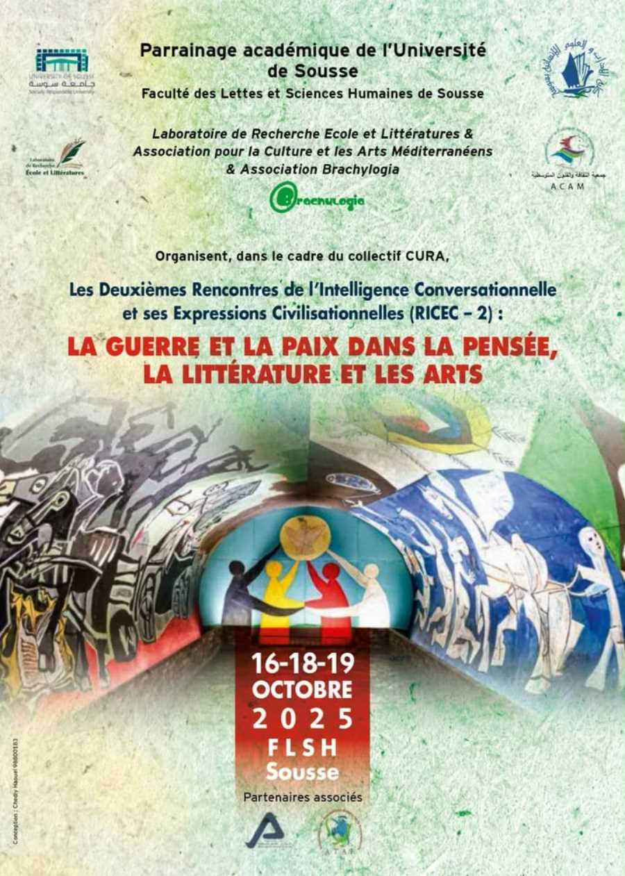 الصفحة الرئيسية ندوات ومحاضرات سوسة: ندوة دولية حول “الحرب والسلم في الآداب والفنون” من 16 إلى 18 أكتوبر 2025
