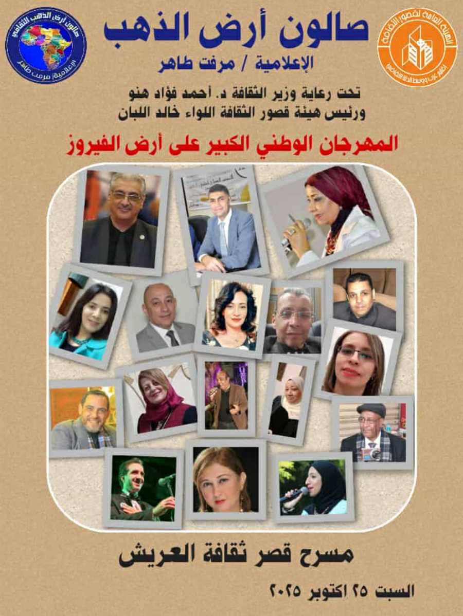 🇪🇬 مصر: ينظّم صالون “أرض الذهب” يوم السبت 25 أكتوبر 2025 مهرجانًا وطنيًا بالعريش بعنوان “سيناء في قلب الوطن – من الحرب إلى الإعمار”